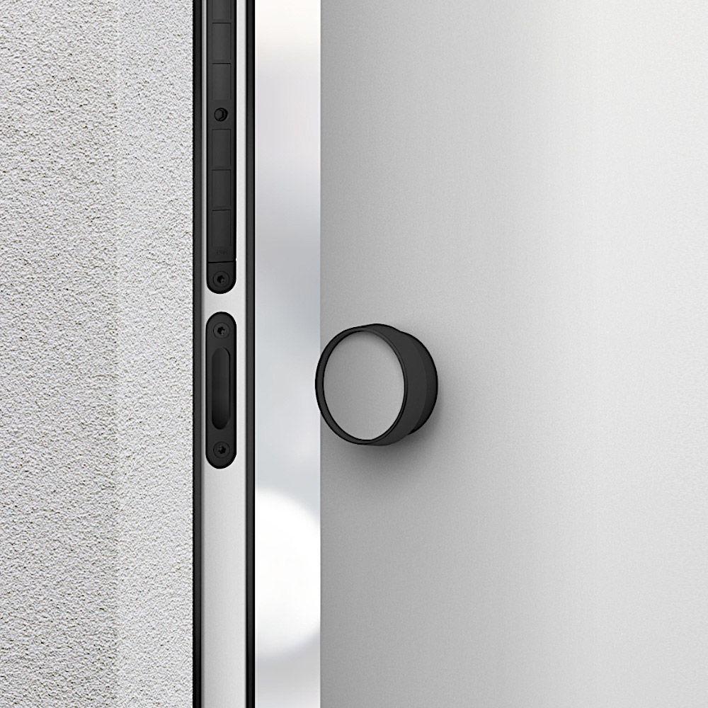 Kulaté madlo s příjemný ovládáním. Madlo je vyráběné z masivní mosazi, s možností změny/výměny magnetické desky na ploše madla pro sjednocení povrchu/barvy madla s dveřmi, nebo pro výrazné zviditelnění ovládacího prostoru dveří. Pro maximální výběr je madlo Oko dodávané v 10-ti povrchových úpravách.